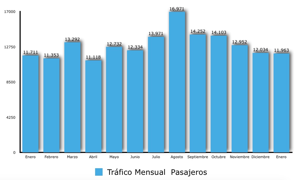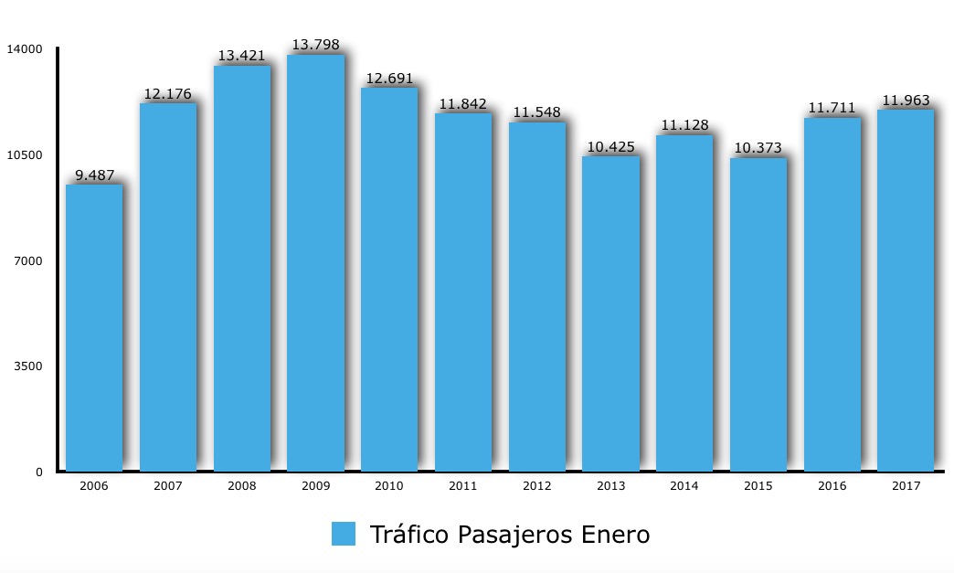 Enero de 2017 supone estadísticamente un mes por encima de la media desde 2005, unos 1.000 pasajeros más que los “eneros” de ese periodo, que arrojan una media de unos 10.800 usuarios en el aeropuerto herreño.
