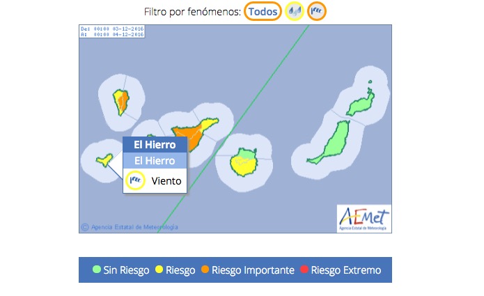 Se han registrado valores de 68 km/h en San Andrés GMª/La Agencia Estatal de Meteorología (AEMET) establece Aviso Amarillo por vientos en la Isla para