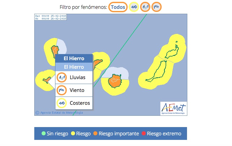 La jornada deja una de 40 litros metros cuadrado en El Hierro GMº/Se cumplieron las previsiones de la Agencia Estatal de Meteorología (AEMET) y la