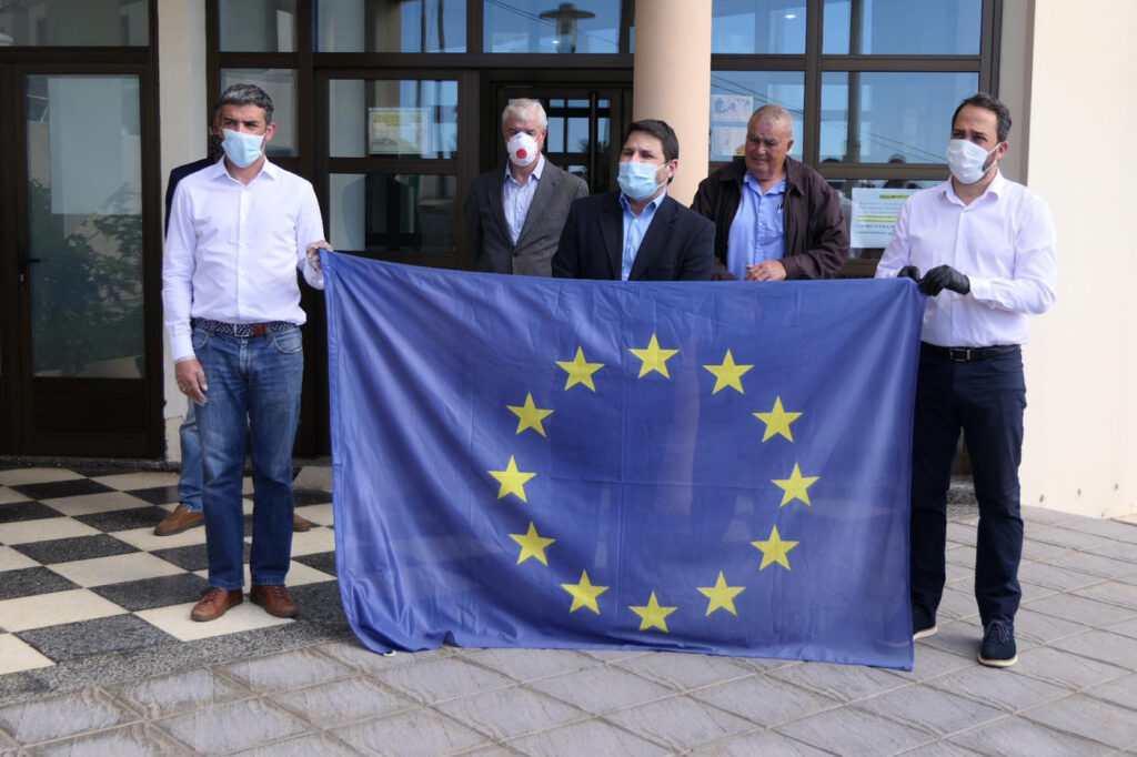 Representantes de las instituciones herreñas han desplegado la bandera de Europa en el Día de Europa 2020