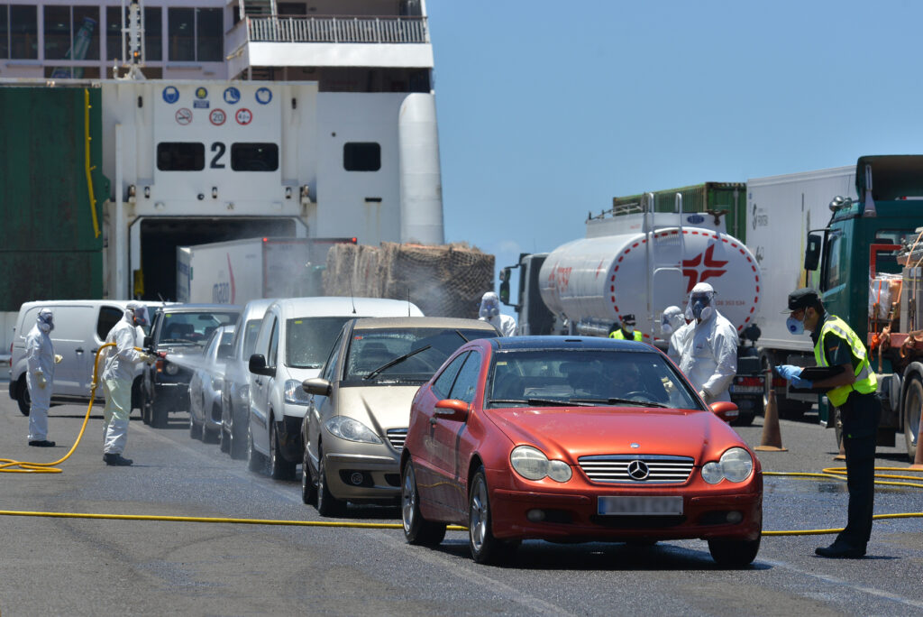 Controles de temperatura, movilidad y desinfección vehículos a la llegada en el Puerto de La Estaca