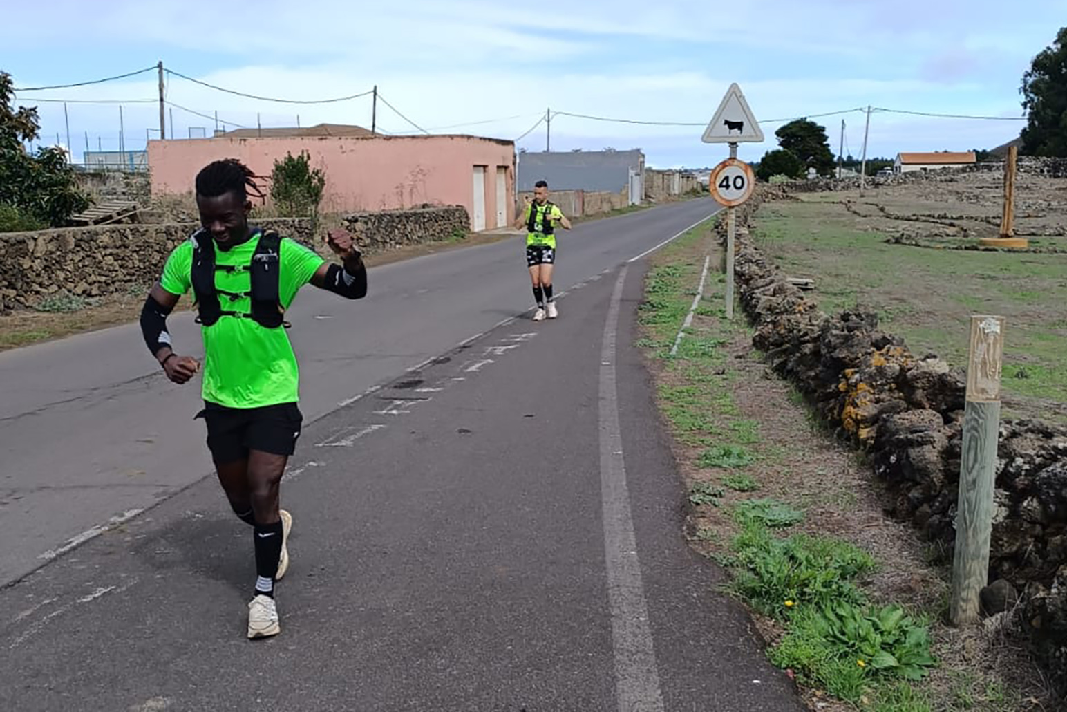 Alzueta recorre los caminos herreños en compañía del corredor Djibril Dieye.