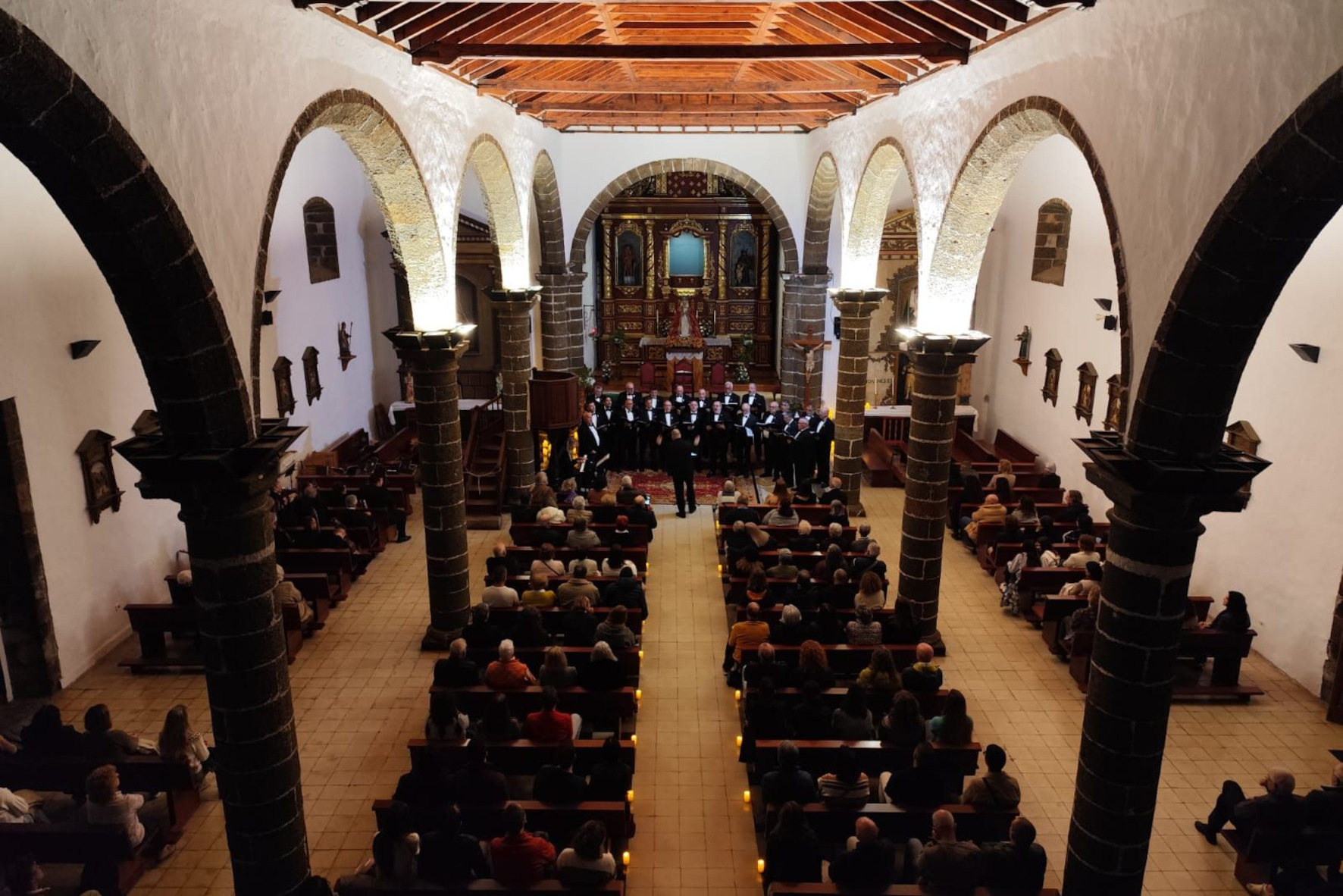 Coordinado por El Ayuntamiento de La Frontera y La Parroquia de Candelaria, y con motivo de La Fiesta de nuestra Patrona, hemos tenido la oportunidad en nuestro pueblo de disfrutar de dos actuaciones de esa muy famosa agrupación musical, procedente de Santa Cruz de Tenerife, la primera actuación fue el sábado en la tarde, con la iglesia completamente llena de fieles, siendo esta actuación dedicada a música sacra que fue un delirio oír esas voces tan refinadas y esos instrumentos tan bien afinados y coordinados, ofreciendo piezas de grandes autores musicales, dándose además la oportunidad preciosa de que entre los miembros del grupo hay un componente herreño, ya famoso vocalista, natural de Valverde que fue una delicia escucharlo el joven se llama Roque, que interpretó una pieza muy famosa, creo que hijo de D Pablo muy conocido en nuestra isla.