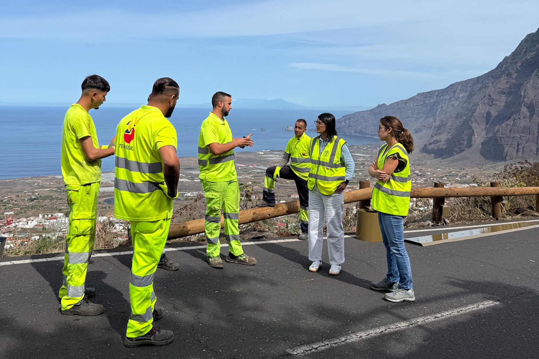 La vicepresidenta del Cabildo de El Hierro, Ana González, ha supervisado hoy, los trabajos, que se desarrollan en el ejercicio de las competencias en materia de conservación y mantenimiento de las carreteras del Cabildo de El Hierro con la finalidad de mejorar la seguridad vial con la instalación de estos sistemas de contención de mayor integración paisajística.