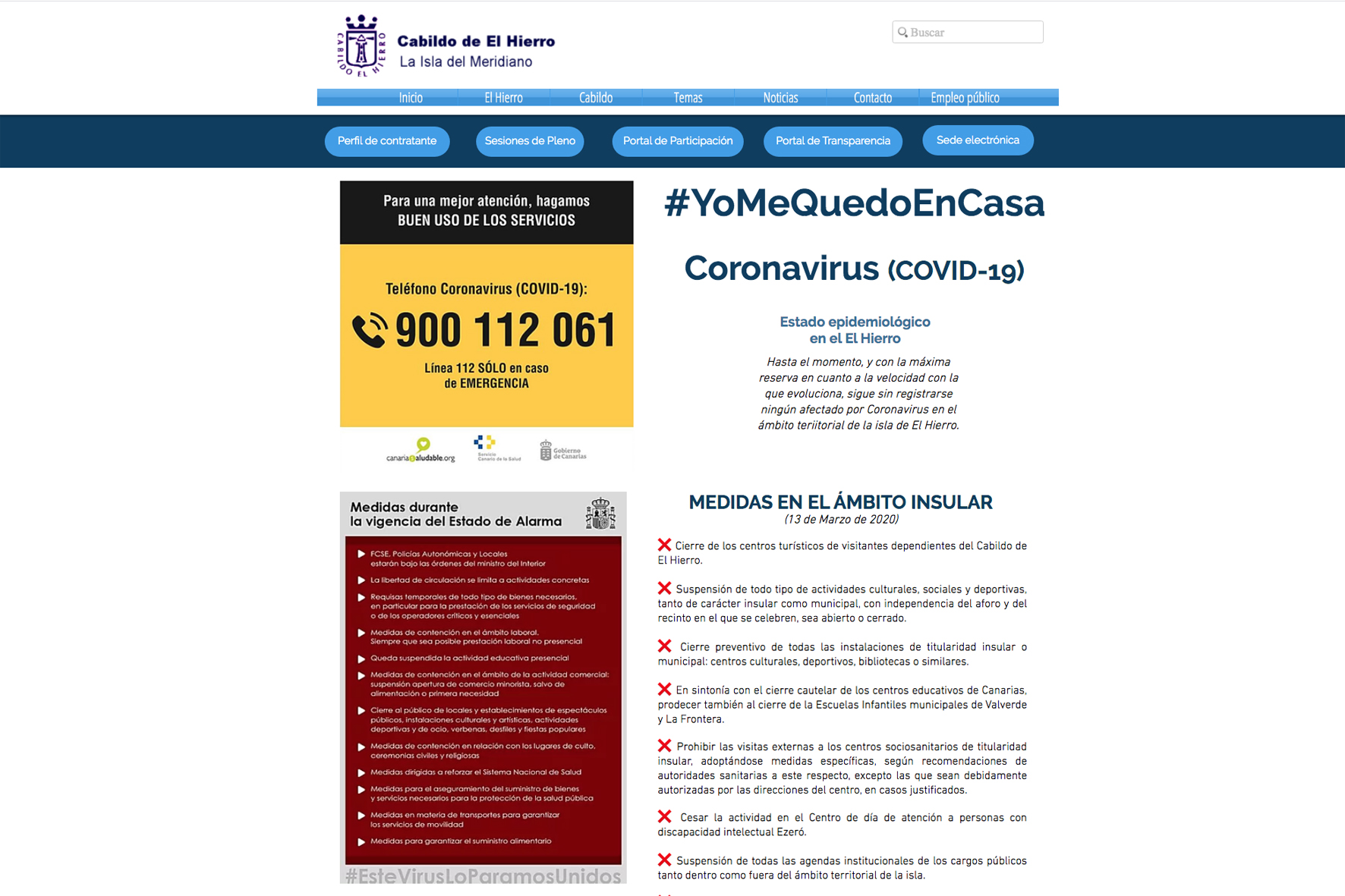 Se puede acceder a este apartado a través de la pagina web del Cabildo de el Hierro: https://www.elhierro.es/ y directamente a través de este enlace: https://www.elhierro.es/coronavirus?fbclid=IwAR2e1weijP3RmZHOyOS_6nluspRNiaCIeOx4qMN2awjciuJNSPHY2HU7Jok
