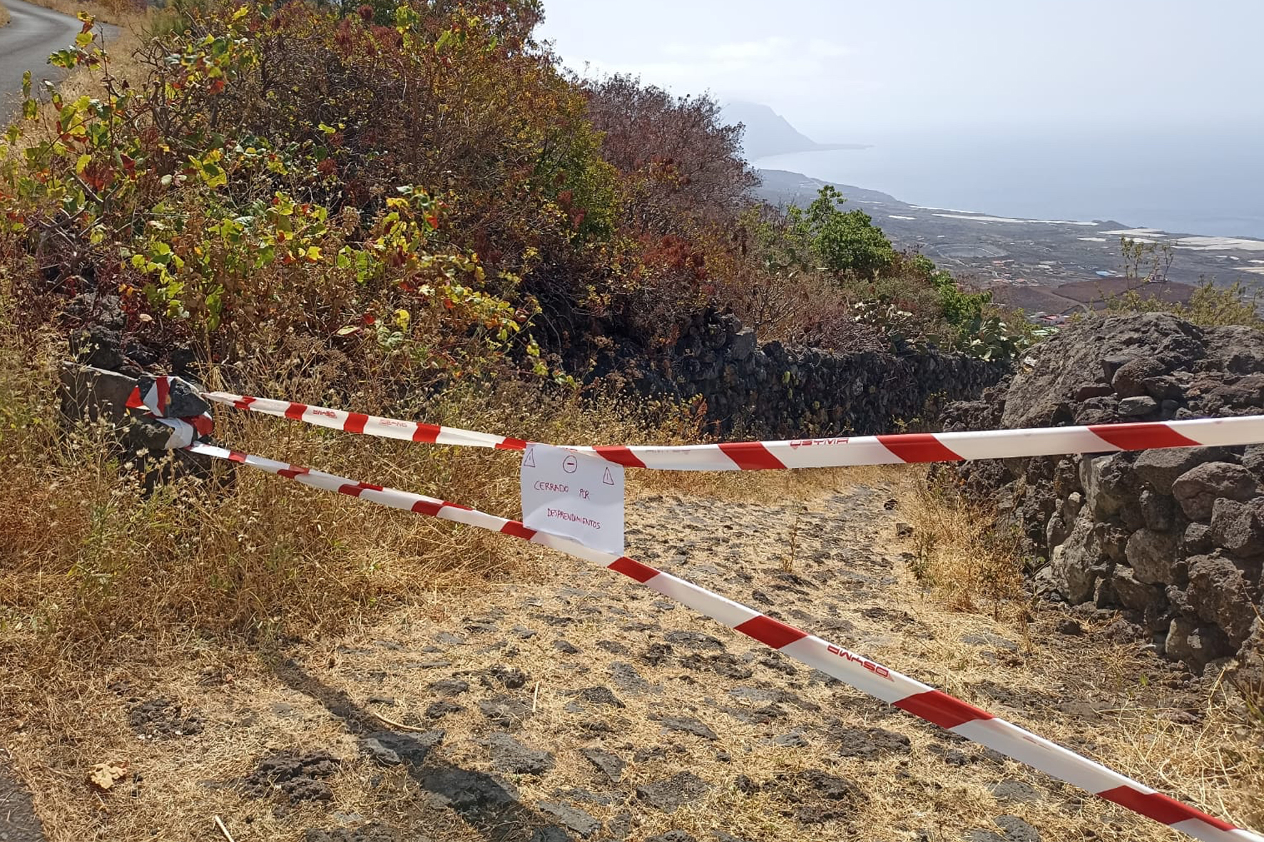 El Cabildo de El Hierro, ha instalado en el punto de partida y finalización, así como en el resto de accesos a este sendero, señalización advirtieron del cierre y prohibición de uso, con el fin garantizar la seguridad.