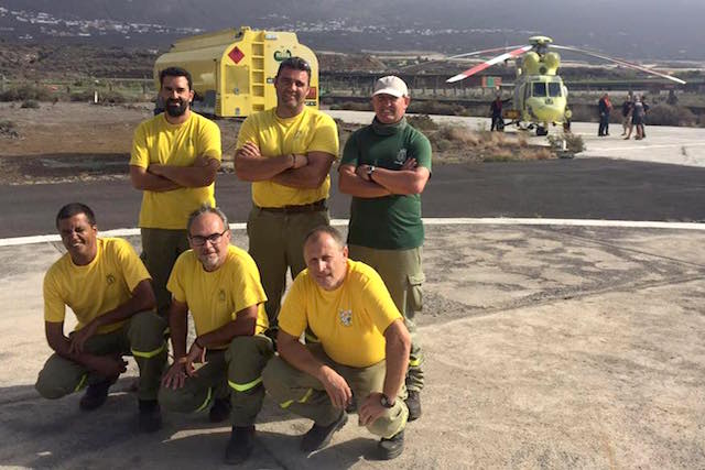 Redacción/Una brigada del Área de Medio Ambiente del Cabildo de El Hierro se incorporaba en la tarde de ayer a las tareas de extinción en La Palma. Los seis operarios herreños eran trasladados a la «isla bonita» desde el helipuerto situado en el Valle del Golfo a bordo de uno de los helicopteros del GES, aeronaves que estan llevando el peso de las operaciones aéreas en las labores de lucha contra el fuego.