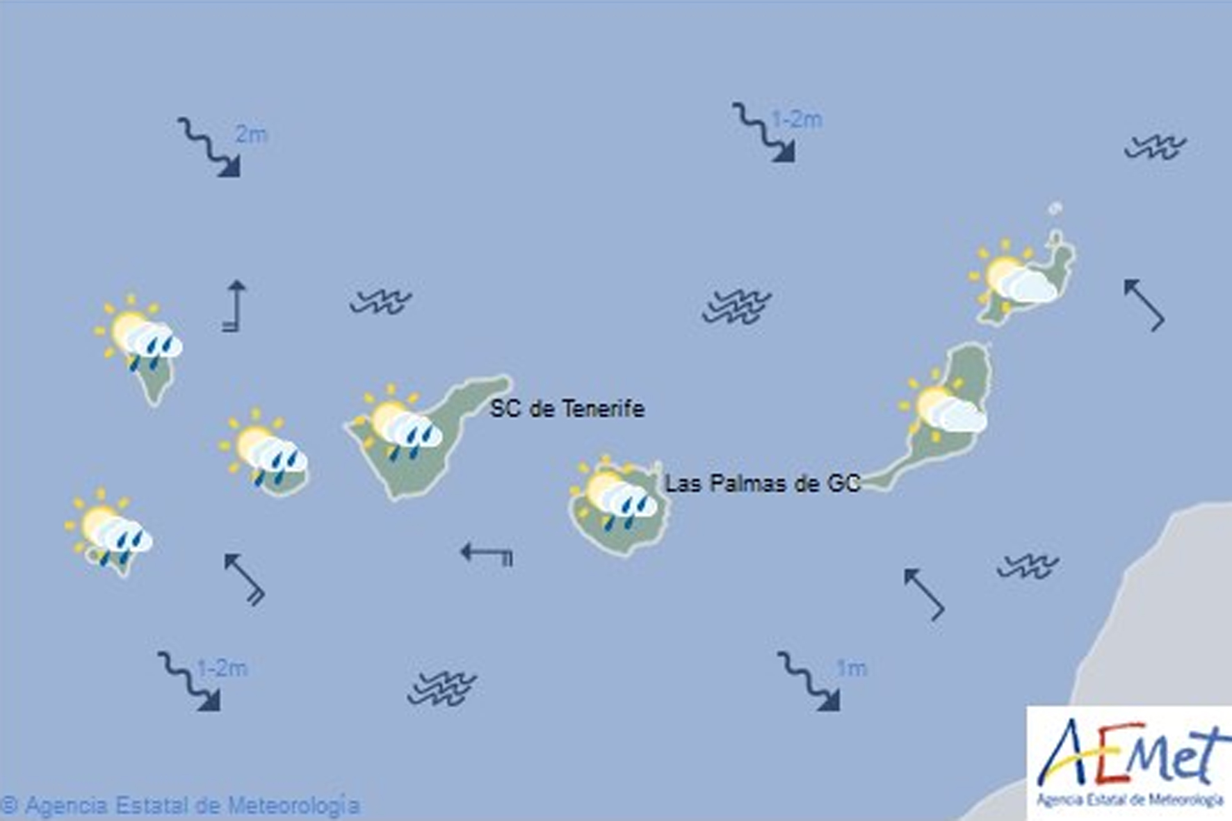 Probabilidad de precipitaciones débiles y ocasionales durante la mañana y la tarde, sin descarta que puedan venir acompañadas de alguna tormenta aislada.
