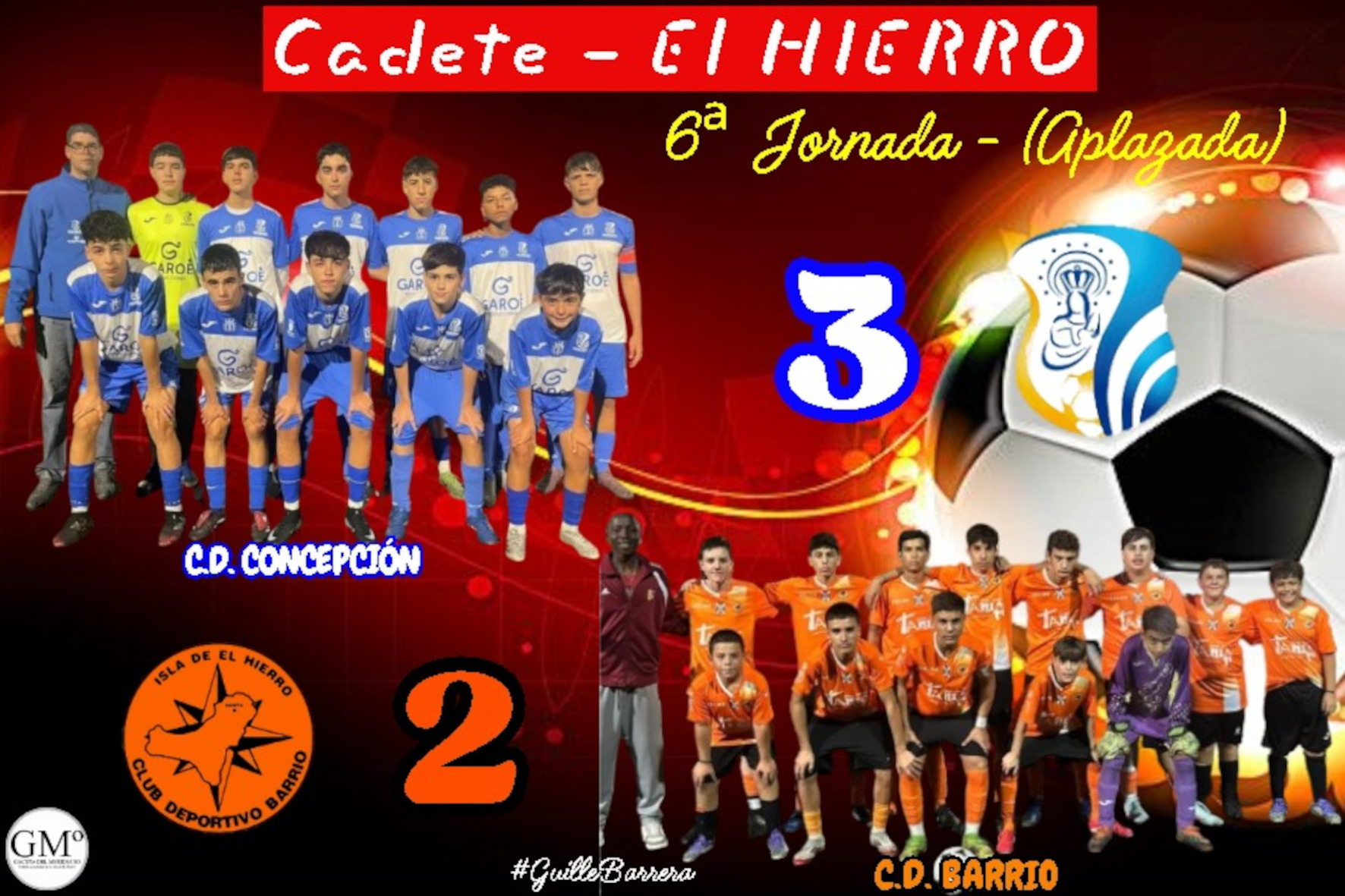 Se disputó el partido que había sido aplazado en su momento de la 6ª jornada de liga Cadete entre el Concepción ante el Barrio con la victoria por parte local, que sigue invicto en la categoría manteniendo el liderato con veintiún puntos, mientras el conjunto del Mocanal sigue segundos con nueve puntos.