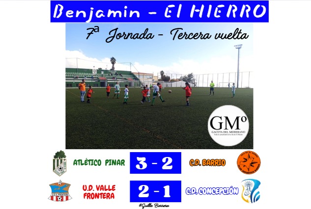 JORNADA 7ª – ALEVÍN – EL HIERRO – SEGUNDA VUELTA: U.D. VALLE FRONTERA 7 – C.D. CONCEPCIÓN 3/ATLÉTICO PINAR 4 – C.D. BARRIO 4