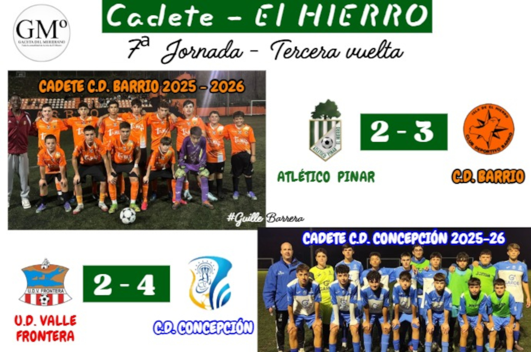 Jornada 7ª Cadete El Hierro – Tercera vuelta: Atletico Pinar 2- C:D: Barrio 3/ U:D: Valle Frontera 2 – C:D: Concepcion 4