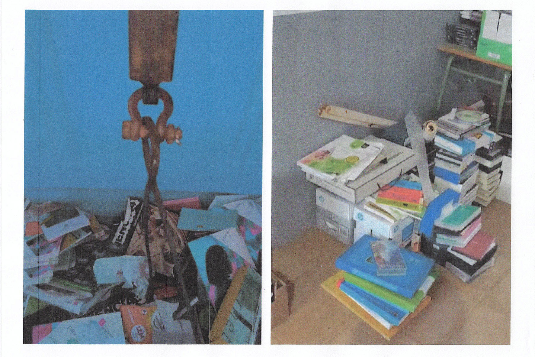 El espectáculo de una grúa cargando un contendedor lleno de libros y material escolar procedentes del laboratorio de biología y de geología, el más significativo del centro, es digno de una secuencia de la película “Fahrenheit 451”, inspirada en la novela distópica del mismo título escrita por Ray Bradbury en 1953, que tenía una fijación por la quema de libros ordenada por los nazis, que alguna vez presenció.