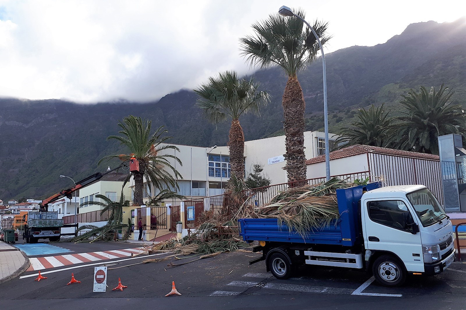 “Estamos ejecutando un plan de poda que nos permitirá la puesta a punto de todas las palmeras altas del municipio. Esta semana hemos ejecutado el desbroce, limpieza y arreglo de los jardines del Colegio y de la zona centro de Tigaday. Tras los temporales de viento acaecidos y los destrozos provocados en el colegio, priorizamos el inicio de este Plan por esta zona” explica Barrera.