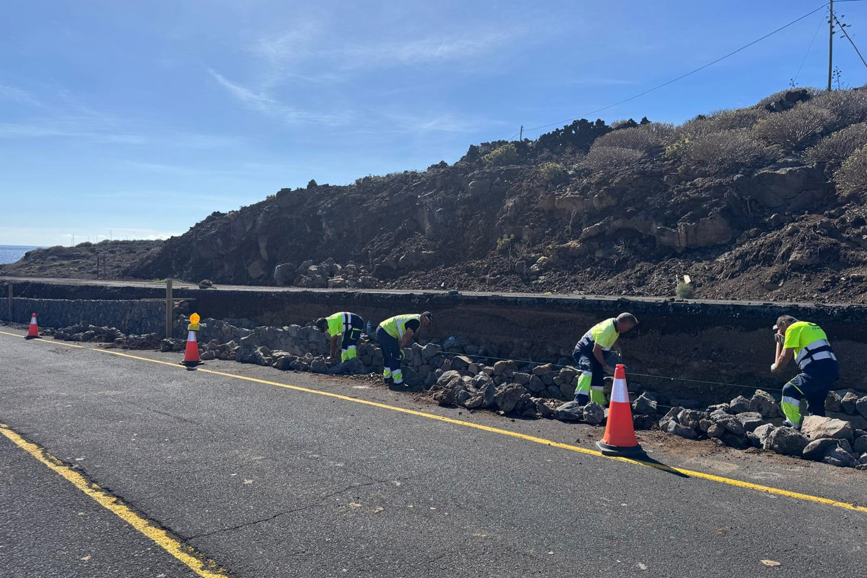 Las actuaciones previas al reasfaltado de la vía en el tramo que une el Aeropuerto con el cruce conocido como Tejeleita, incluyen además el tratamiento de los taludes y cunetas de drenaje de aguas pluviales, así como la señalización horizontal y vertical, según ha informado el Cabildo.